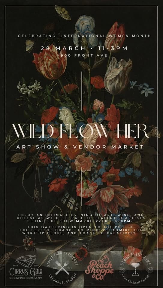 No, the event title is not a typo (I know some of you were already drafting an email to let me know). WILD FLOW HER is a Fine Art Show & Pop-Up Market hosted by Cirrus Gold Creative Company, Street Food Saturdays, The Peach Shoppe & Co and Stirrup Trouble, celebrating International Women’s Month. Come together with local artists, creatives, food trucks, and live music for a vibrant afternoon in downtown Columbus. This event will feature 30+ vendors, local art, delicious food and good vibes. If that entry fee to the Food Truck Festival turned you away, this event is a free alternative!